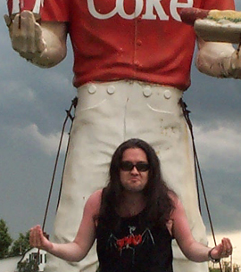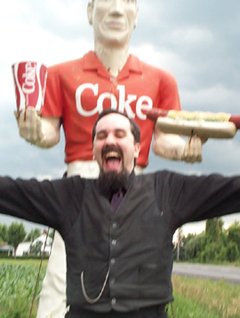 Though there is only ONE Lord of Coke and Hot Dogs, there are many Pretenders to The Throne. Click HERE to see these paltry imitations. Click HERE (.ZIP) to get the official LoCaHD wallpaper. In this picture, MGP expresses his Religious Experience at being in His presence. |